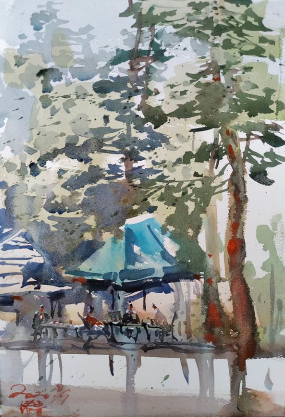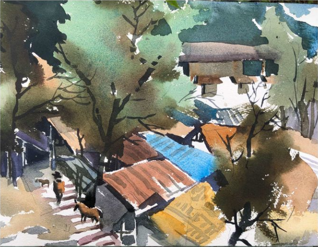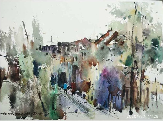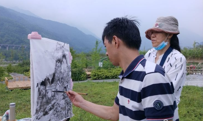 2020年7月,市政协书画院副院长、市文联副主席李斌,市政协书画院研究员一组组长、市美协副主席李绪贵带队,组织研究员及德阳市美协部分会员一行35人,走进绵竹清平童话镇釆风写生创作。