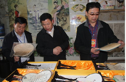 视察组一行先后前往位于旌阳区的德阳潮扇传习所、绵竹市清平乡,现场观赏了德阳潮扇制作工艺、九顶山羌汉山歌。德阳民俗民间文化资源丰富,2005年我市对全市民俗民间文化艺术进行了全面普查,共收集线索671条,项目涵盖14个门类501项(条)。根据项目的种类、特点,我市建立了纸质、电子、照片、音像和实物档案,文字材料全部录入数据库,建有电子档案,形成了照片档案480余幅,录音资料101小时,音像资料41盒,收集民间作品、实物261件,出版资料文集10余部。