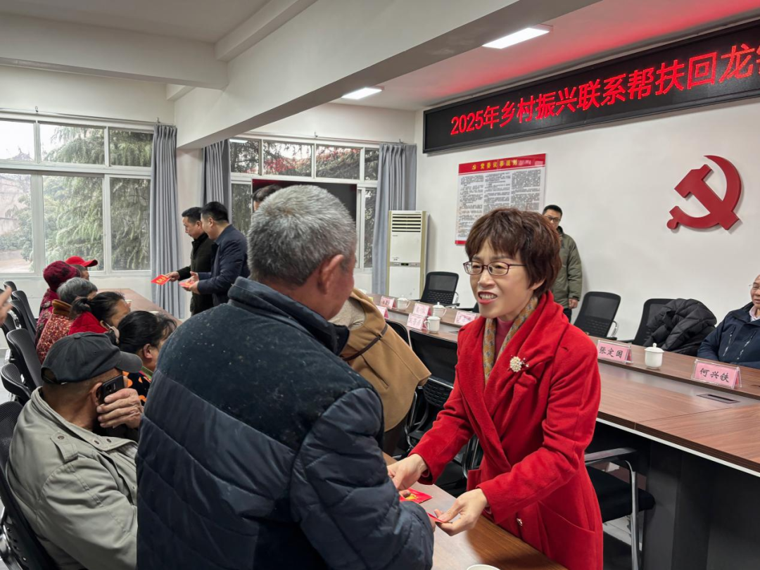 会上,罗春华一行听取了回龙镇关于乡村振兴工作情况汇报,对回龙镇在特色产业培育、基础设施建设、乡村治理等方面采取的措施和取得的成效给予充分肯定。她勉励镇村干部总结经验、再接再厉,持续抓好“防返贫监测”工作,精准落实帮扶措施。罗春华一行还为脱贫不稳定户、边缘易致贫户、突发严重困难户和低收入脱贫户代表们送上慰问金和新春祝福,传递了浓浓的节日温情。