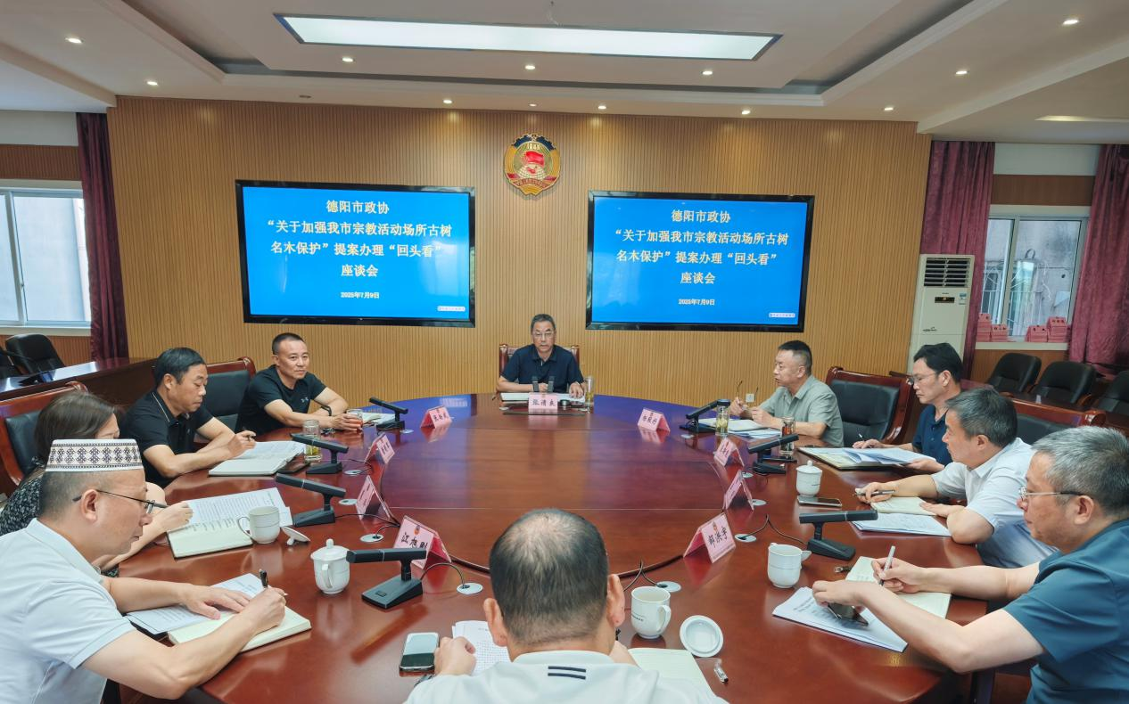 7月9日上午,市政协民族宗教和港澳台侨外事委员会组织部分委员和相关部门,围绕市政协九届三次会议的提案《关于加强我市宗教活动场所古树名木保护的建议》开展提案办理“回头看”座谈会,市政协副主席张清良出席座谈会并讲话。