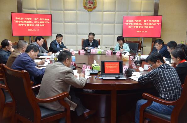 10月10日上午,市政协召开党组中心组(扩大)学习会暨“两学一做”学习教育“坚守纪律底线,树立清风正气”集中专题学习讨论会议。市政协主席刘哲主持,市政协副主席吴玉华、李友成、刘龙春、侯富林和秘书长陈运兴出席会议。