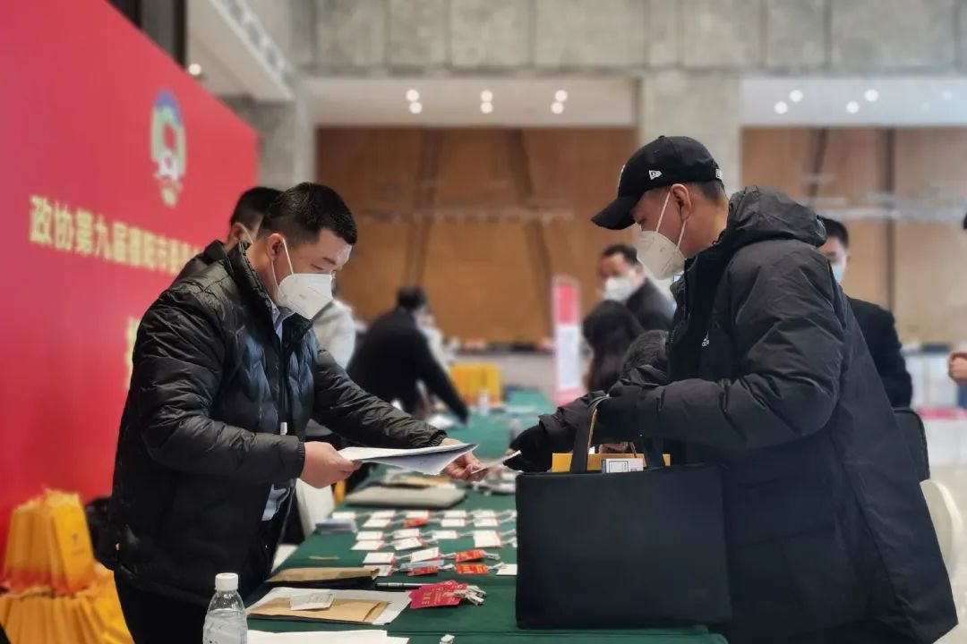 在报到现场,市政协委员们在工作人员的引导下有序进入大厅签到、领取会议材料等,有条不紊地办理报到手续。