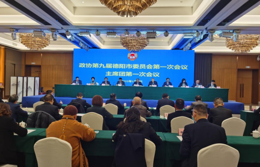 1月4日下午,政协德阳市第九届委员会第一次会议主席团第一次会议在汉瑞酒店花里国际厅召开。市政协主席何明俊主持会议。