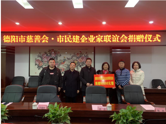 12月24日,民建德阳市委副主委、民建企联会会长洪磊代表企联会向德阳市慈善会捐赠爱心资金80000元,德阳市民政局党组成员、副局长尹小彦代表市慈善会接受捐赠。