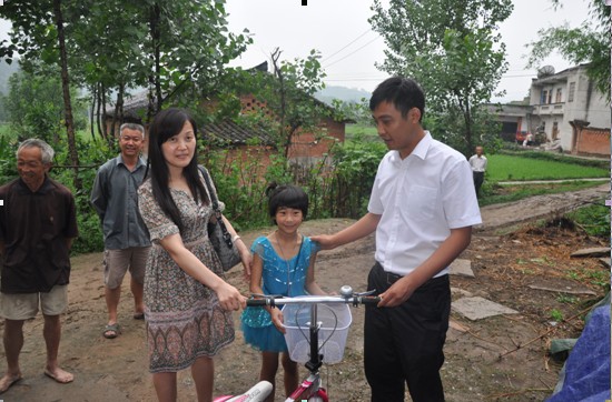 在“一对一”结帮扶儿童周甜瑞家中,周锐同志和小朋友进行了亲切交流,耐心询问了孩子的学习、生活及家庭情况,把自行车、文具等心愿礼物送给了周甜瑞小朋友,周甜瑞小朋友表示一定要努力学习,以优异的成绩来回报大家的关爱。