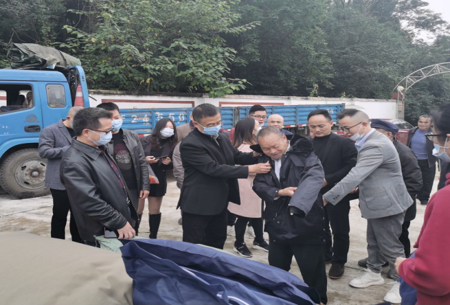 10月19日,市政协副主席、工商联主席徐春龙带领市旌成商会、市锦江妇产医院相关同志,赴中江县玉兴镇开展“九九重阳献爱心”帮扶慰问活动,为玉兴镇敬老院捐赠30张木床和35件御寒羽绒服,为玉兴镇旭光村高龄贫困户捐赠20件御寒衣物。