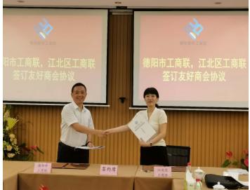 在江北区,德阳市工商联考察组一行分别参观了江北区满惠网络科技有限公司、重庆曙光都市工业园、重庆协通国际物流有限公司。德阳市工商联与江北区工商联签订了《加快两地非公经济协调发展合作协议》,德阳市建筑房地产联合协会与重庆曙光都市工业园签订了《友好单位合作协议》,德阳市现代物流行业商会与江北区物流商会签订了《友好商会合作协议》。